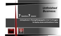 - A more inclusive history that informs decision making today: about race and class equity, democratic access, and achieving excellence in the city and institutions that impact it. This includes making sure that lessons from history about these issues are considered as Boston re-vamps its school assignment process and designs and implements other reforms. This also includes raising awareness about the influence of larger political forces, such as corporate interests, impacting excellence, equity, and access today in public education, our city, and our society.