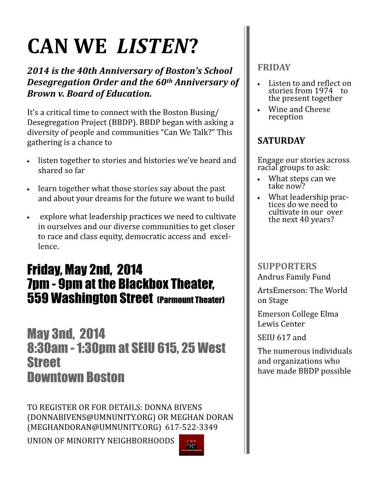 When the BBDP listened to stories from and read about the era of Boston’s school desegregation crisis, transportation —“busing” –became the flashpoint but the struggle and any resulting gains or trauma was about so much more. As we learned early in our process: